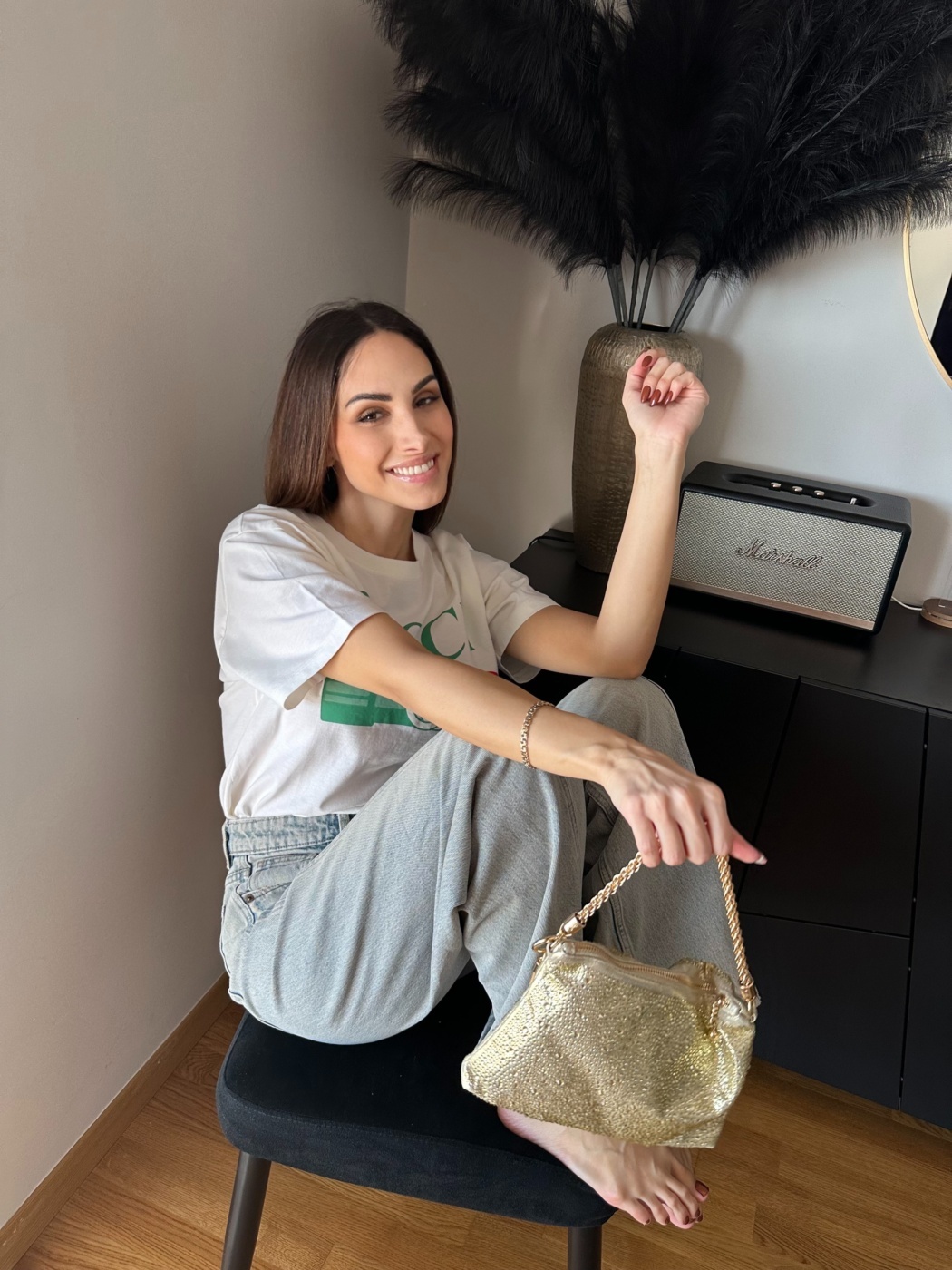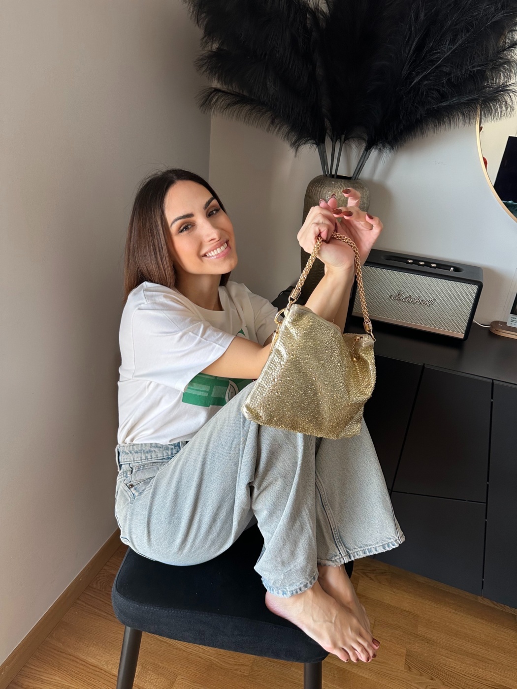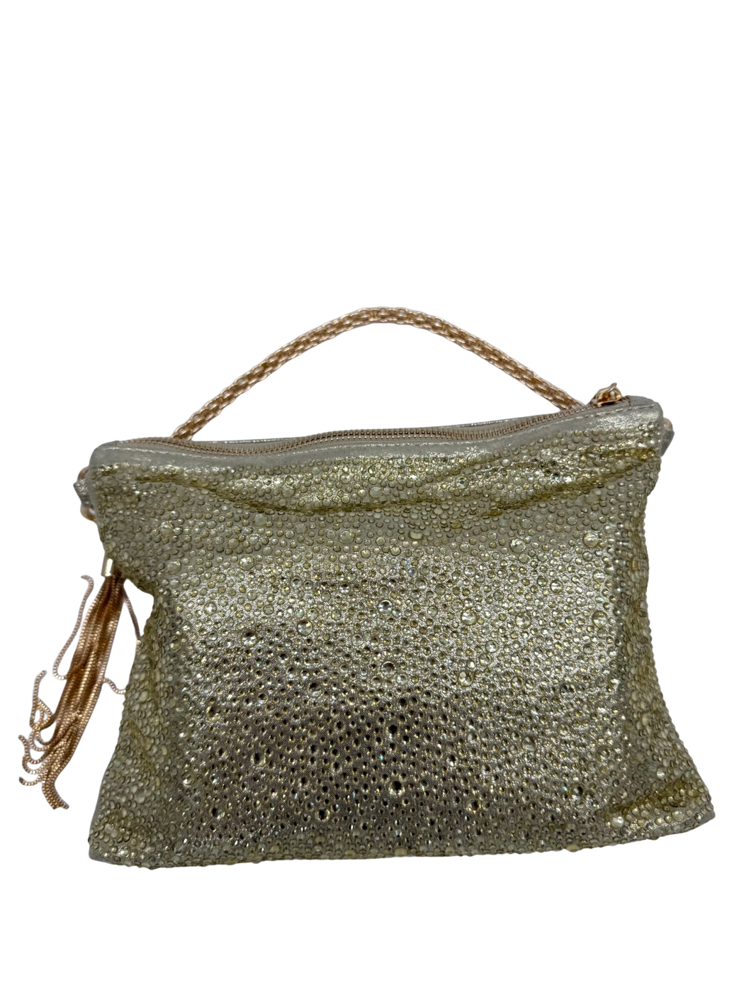 - Τσάντα σε χρυσό απόχρωση με στρας