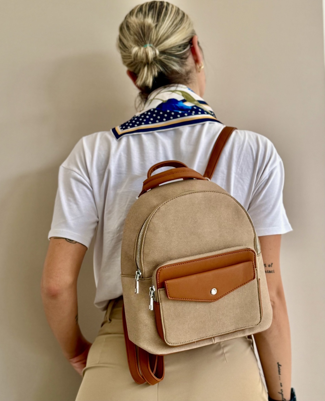 - Περιλαμβάνει μία θήκη για κινητό στο εσωτερικό και μία επιπλέον που κλείνει με φερμουάρ.