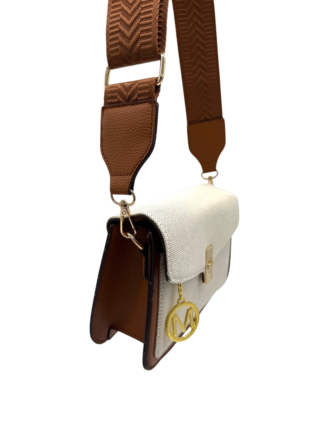 - Ecoleather τσάντα σε καφέ απόχρωση με υφασμάτινη λεπτομέρεια