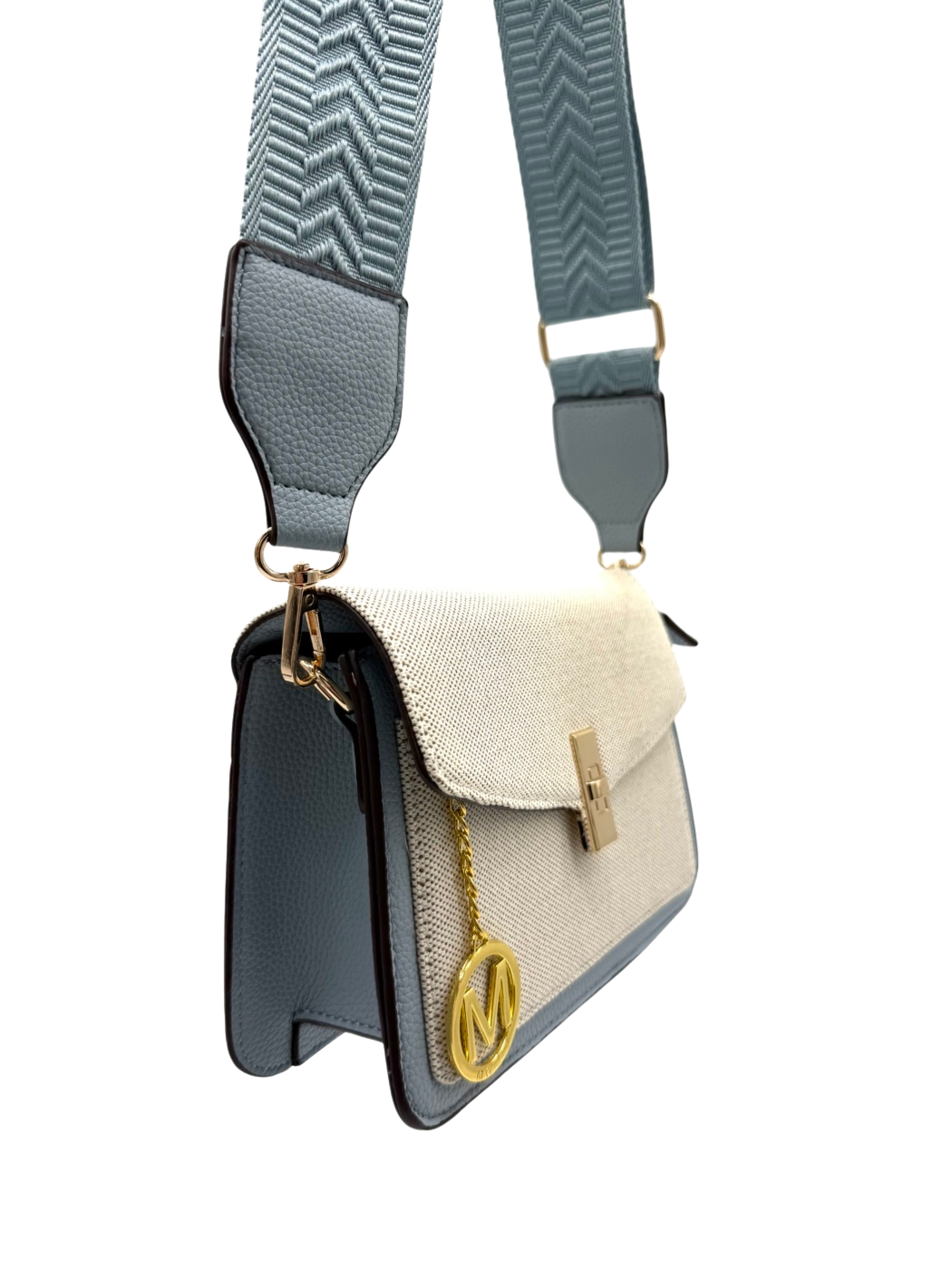 - Ecoleather τσάντα σε light blue απόχρωση με υφασμάτινη λεπτομέρεια