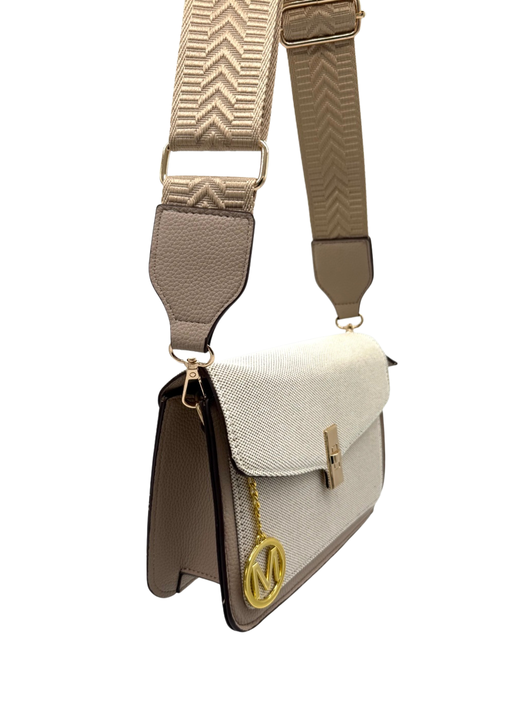 - Ecoleather τσάντα σε mud απόχρωση με υφασμάτινη λεπτομέρεια
