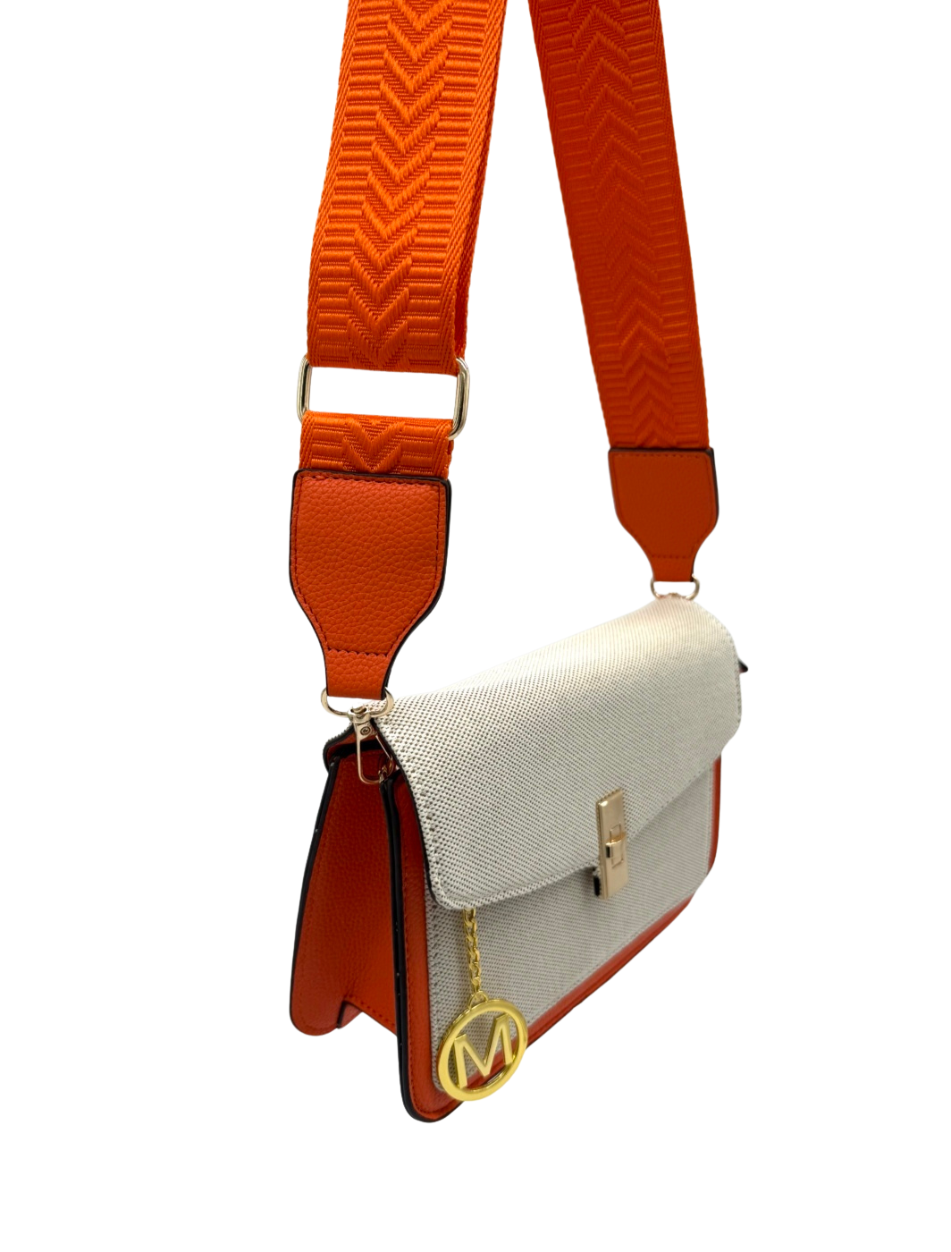 - Ecoleather τσάντα σε πορτοκαλί απόχρωση με υφασμάτινη λεπτομέρεια
