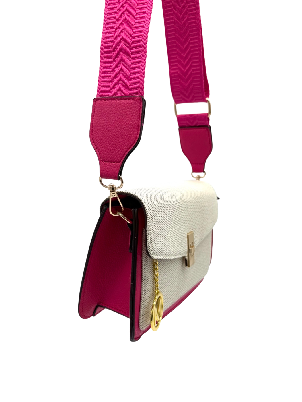 - Ecoleather τσάντα σε rose red απόχρωση με υφασμάτινη λεπτομέρεια