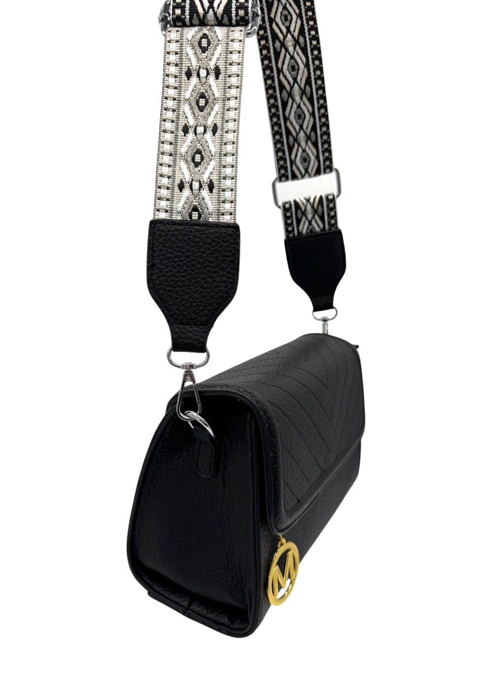- Διαθέτει αποσπώμενο ρυθμιζόμενο υφασμάτινο λουράκι ίδιου χρώματος για χιαστί εφαρμογή