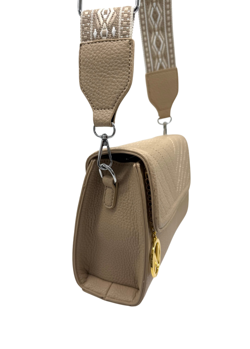 - Διαθέτει αποσπώμενο ρυθμιζόμενο υφασμάτινο λουράκι ίδιου χρώματος για χιαστί εφαρμογή