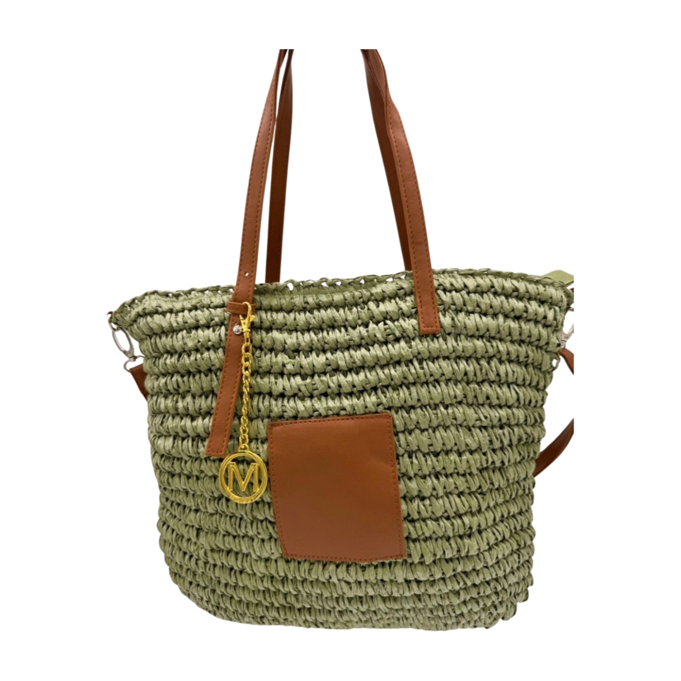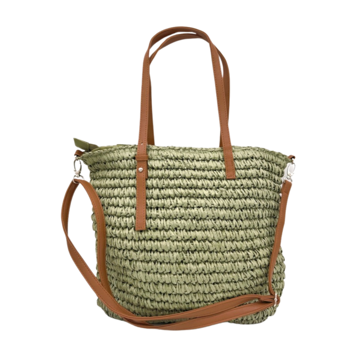 - Ψάθινη τσάντα σε πράσινη απόχρωση.