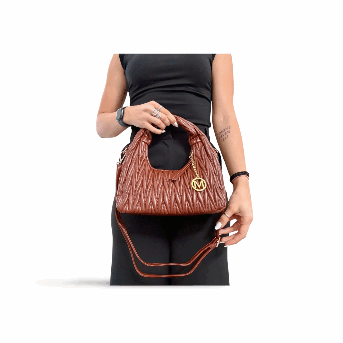 - Διαθέτει αποσπώμενο ρυθμιζόμενο λουράκι ίδιου χρώματος για χιαστί εφαρμογή