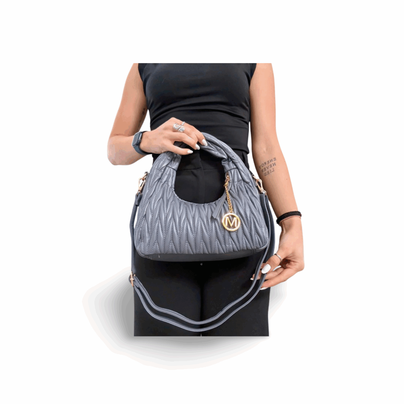 - Διαθέτει αποσπώμενο ρυθμιζόμενο λουράκι ίδιου χρώματος για χιαστί εφαρμογή