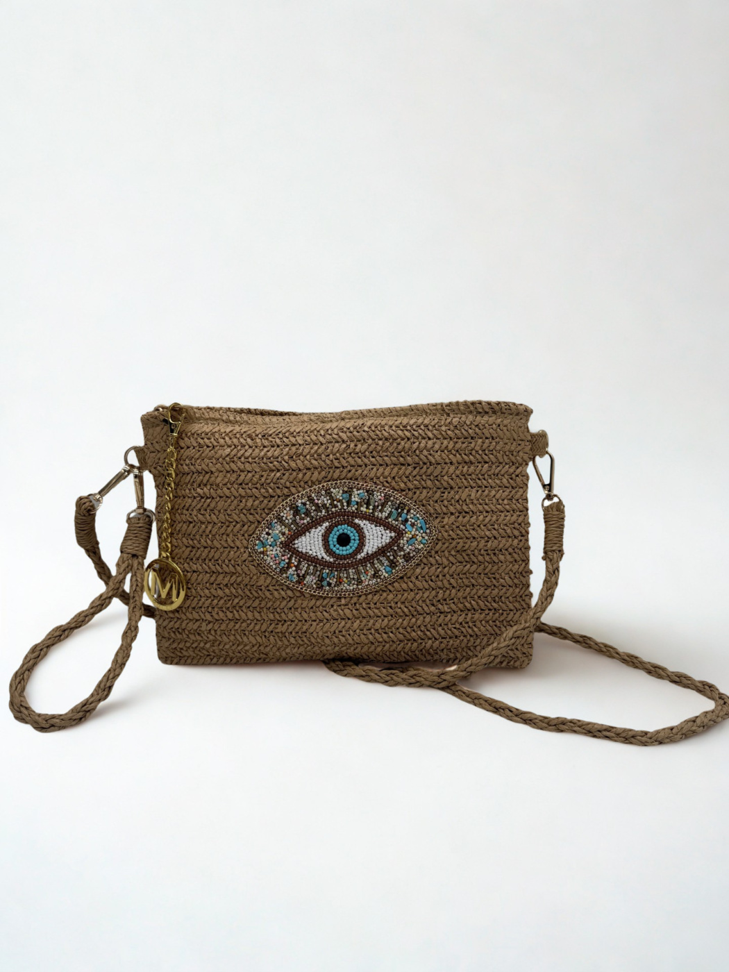 - Διαθέτει ψάθινη αλυσίδα με χρυσούς κρίκους